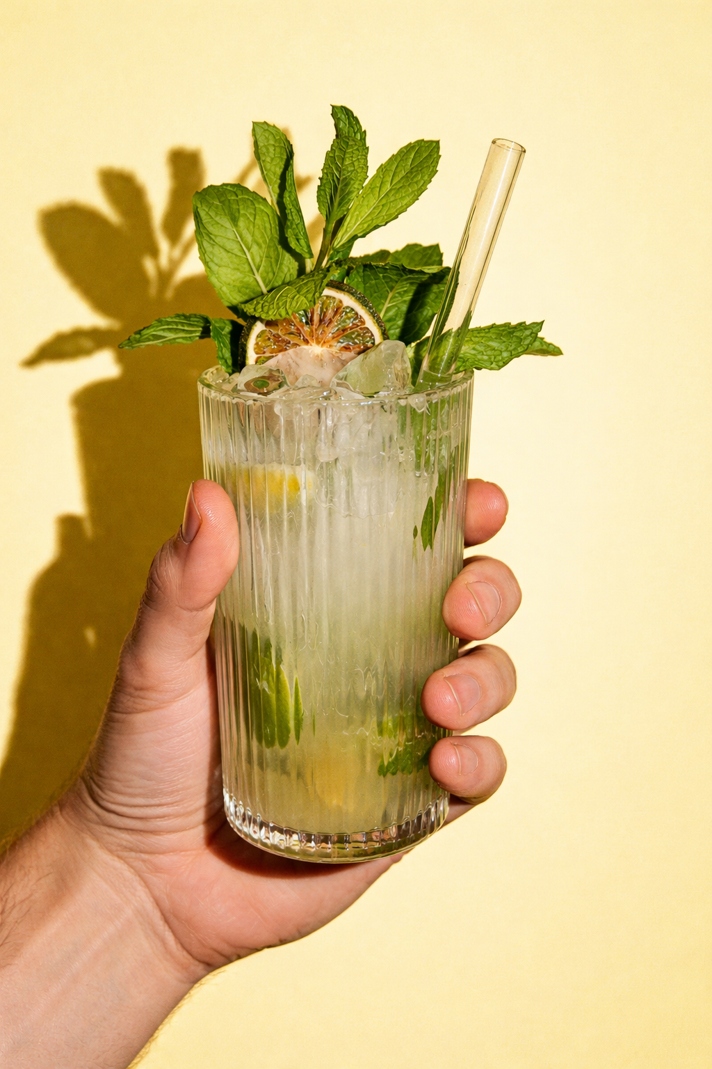 Garnish: Mint Sprig, dehydrated lime wheel