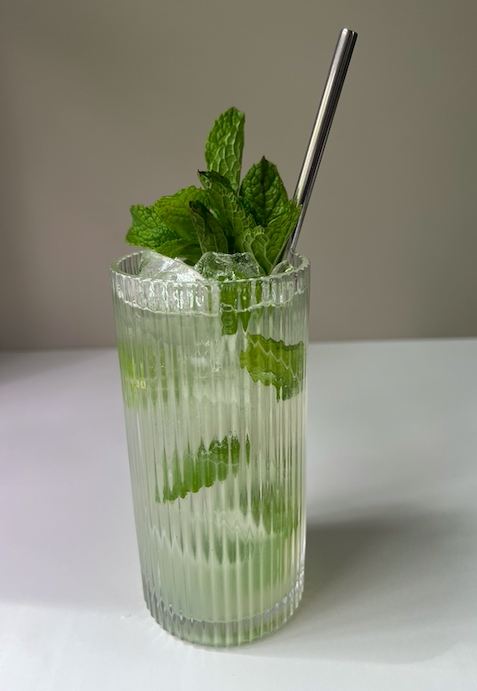 Combine ingredients in a shaker and shake hard with ice for 10-15 seconds. Double strain into a highball glass with fresh ice and top with soda water. Gently stir, and garnish with a large sprig of mint. Add a straw and enjoy!